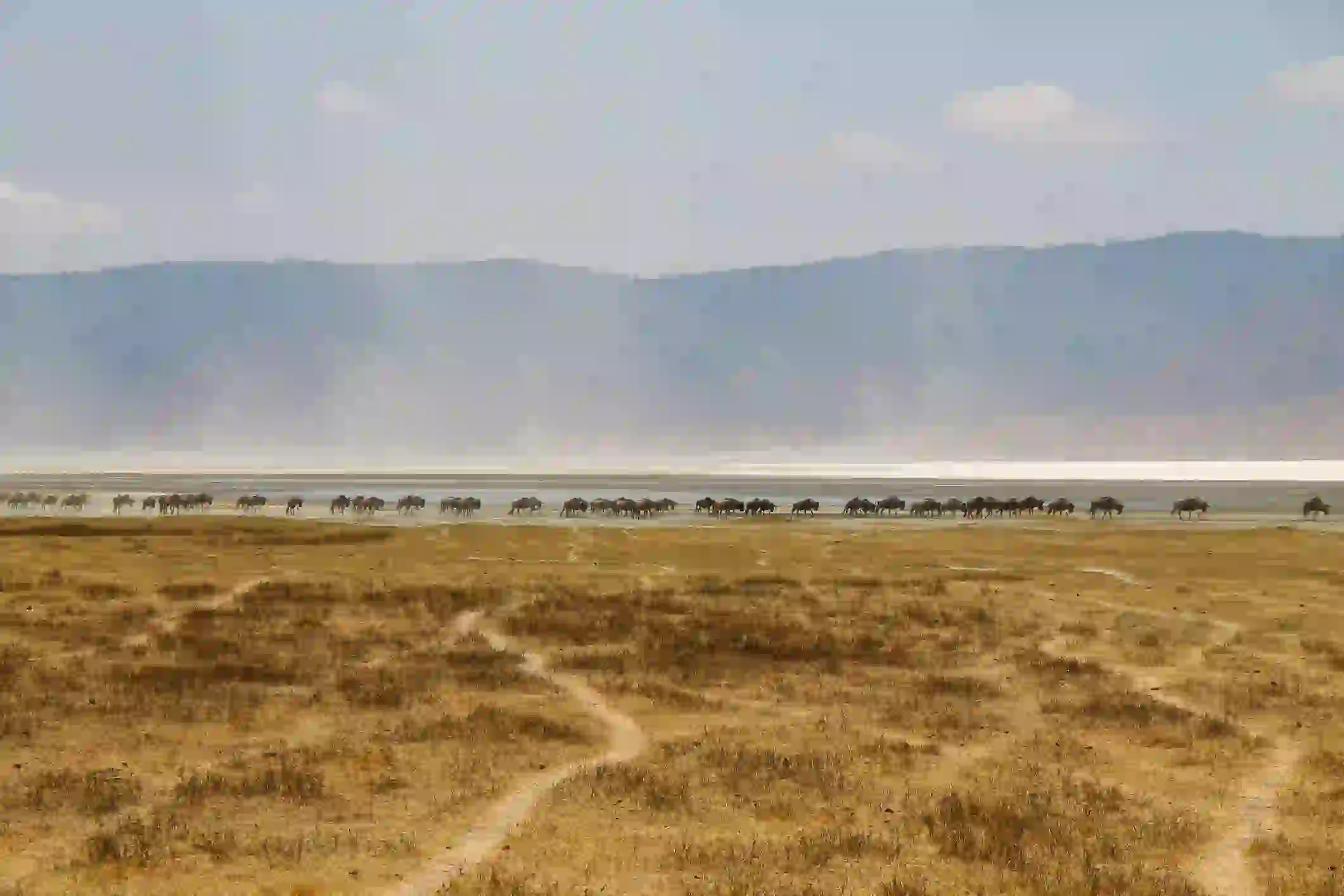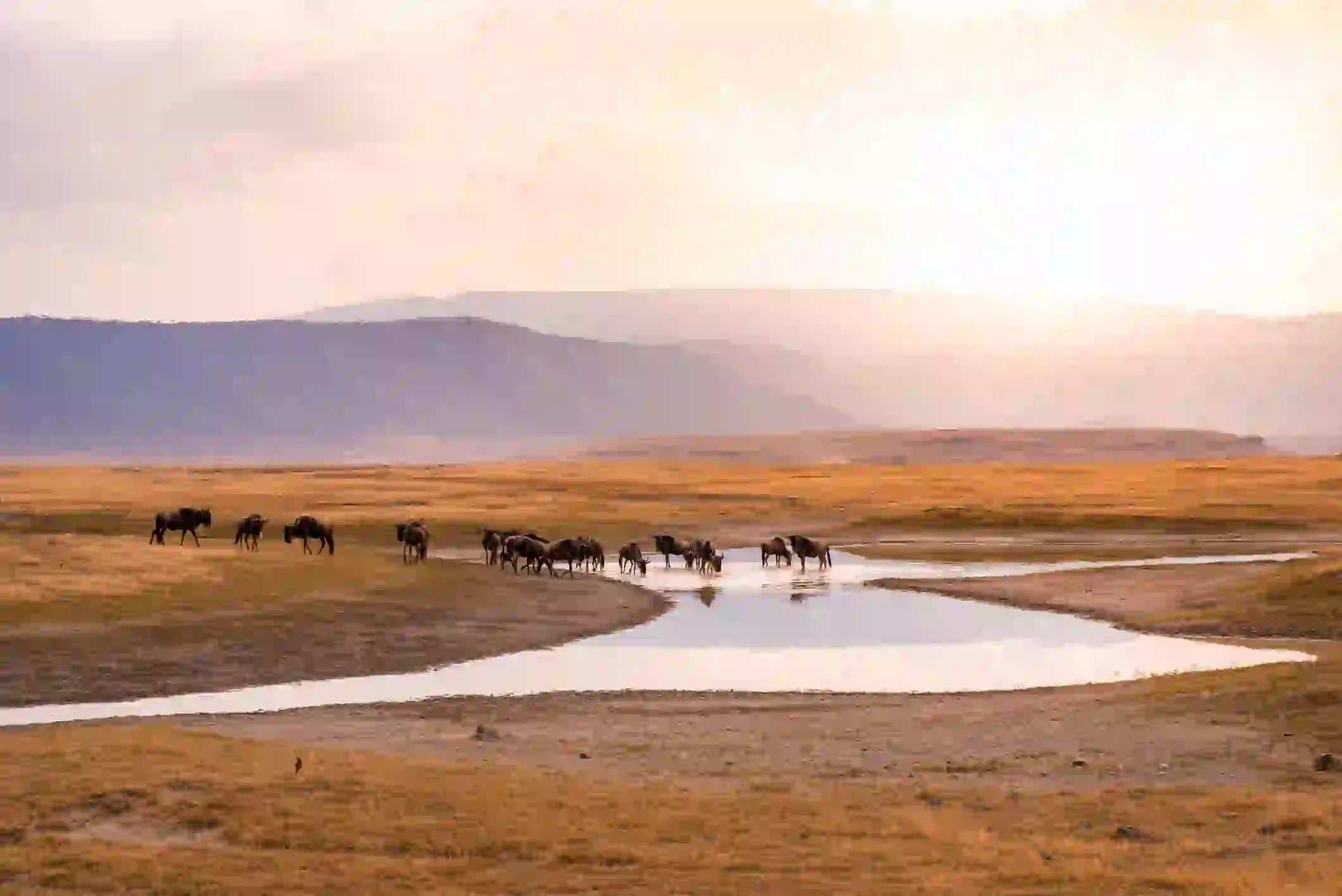 Morning breaks soft and gold above the trees.After breakfast, the road climbs—through hills and farmland, into a place that feels older than memory itself. At 7,500 feet, you reach the rim of Ngorongoro Crater, a vast volcanic caldera where an entire world exists within walls of stone.Wildebeest graze below. Lions patrol the marshes. The air feels still—as if holding its breath.You check in at Ngorongoro Lodge Meliá Collection, your glass-walled perch above the crater. The afternoon is yours: rest, read, or simply watch light slide over the valley floor. As dusk falls, mist rises, and the crater turns to silver.