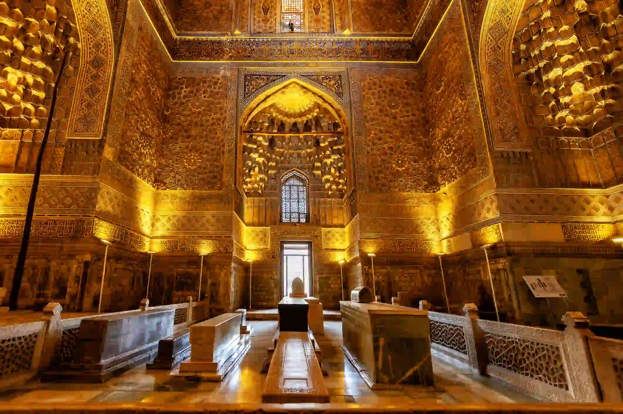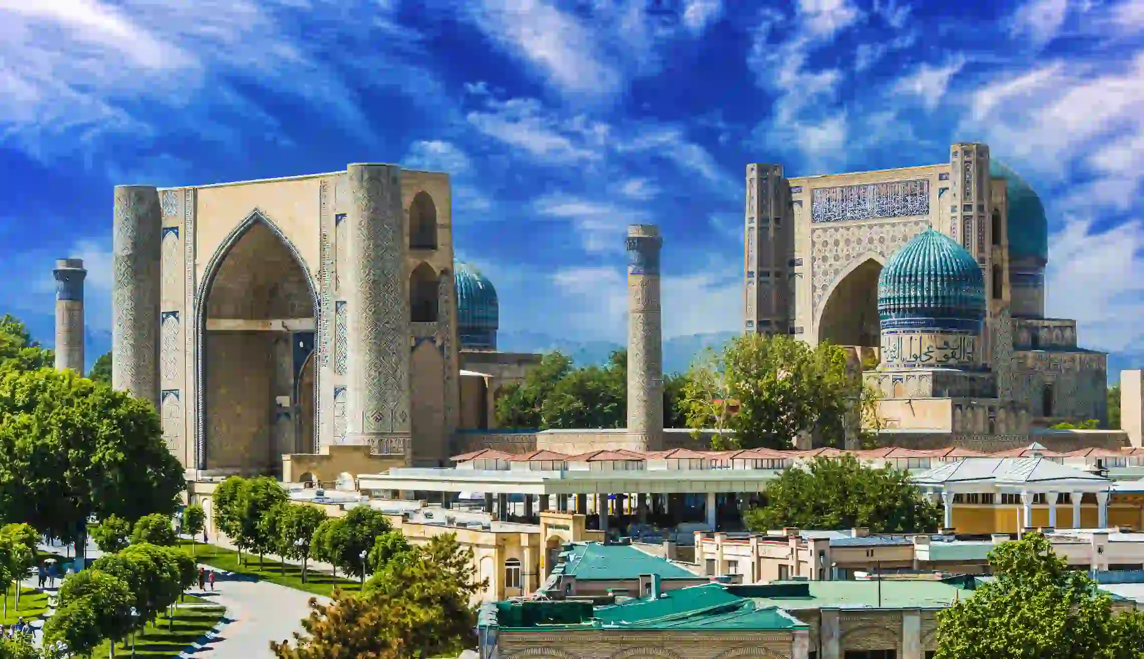 Explore Gur-Emir Mausoleum, resting place of Tamerlane, its turquoise dome a symbol of power and grace. Stand in awe before Registan Square, where three glittering madrasas embrace in symmetry — Ulugbek, Sher-Dor, and Tilla-Kori.Visit the vast Bibi Khanim Mosque and stroll through Siyab Bazaar, fragrant with spice and fresh bread. As evening falls, enjoy a wine tasting in a 100-year-old cellar, where local vintages tell stories as old as the city itself.